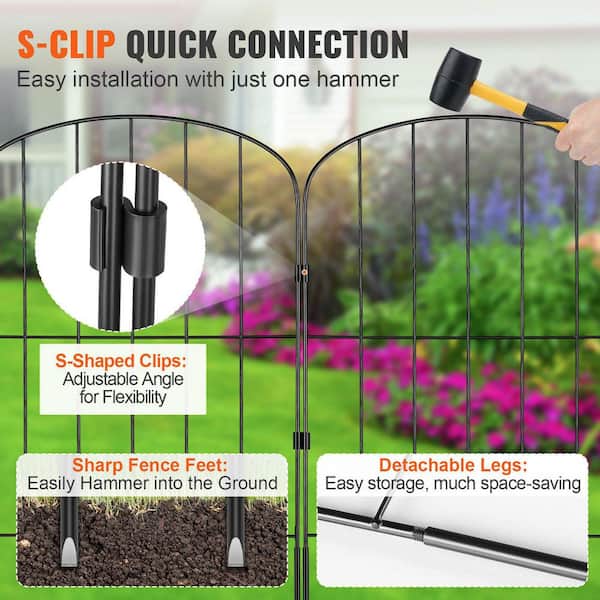 28 Piece 24 in. x 30 ft. Black No Dig Fence Animal Barrier Fence, Steel Decorative Garden Fencing w/ 2 in. Spike Spacing