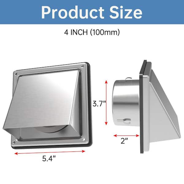 4 in. Stainless Steel Dryer Vent Cover Outdoor Wall with Rubber Cushioned Non Return Flap for House Wall Vent