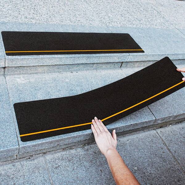 6 in. x 30 in. Black Anti Slip Stair Treads with Reflective Strips, Best Grip Non Skid Tape, High Adhesive, 10 Pcs