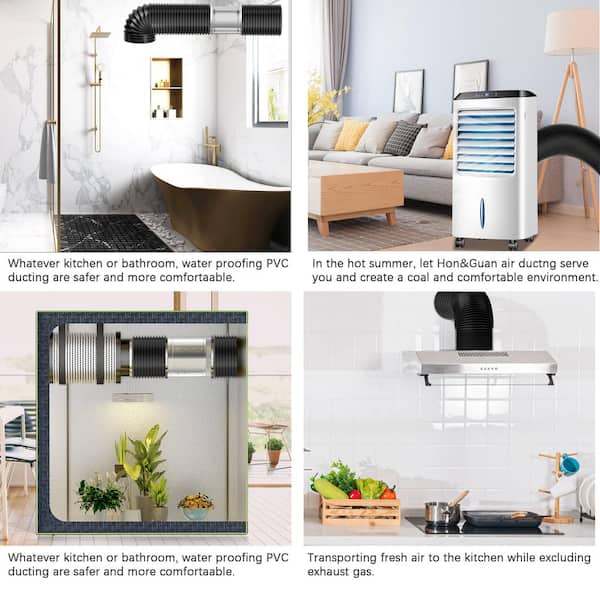Black 4 in. x 16 ft. Insulated Flexible Duct with 2 Duct Clamps for HVAC Ventilation and Duct Fan Systems
