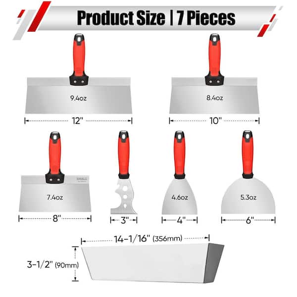 Stainless Steel Drywall Tool Kit, Includes Multi-Purpose Painter’s Tool, 6 in. Putty Knife, 12 in. Taping Knife, Mud Pan