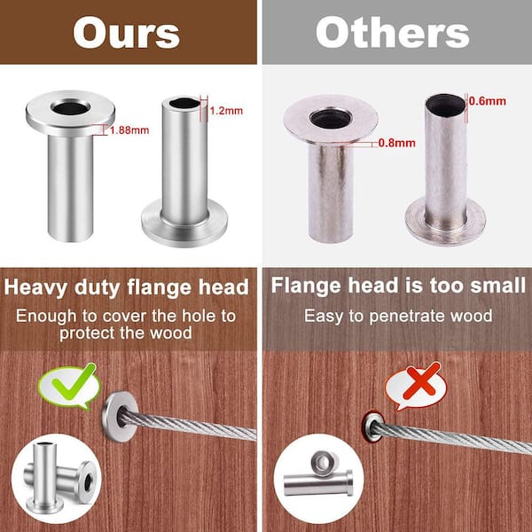 T316 Stainless Steel Cable Protector Sleeves Fits 1/8 in. Cable Railing Wire Rope for Wood or Composite Posts (200-Pack)