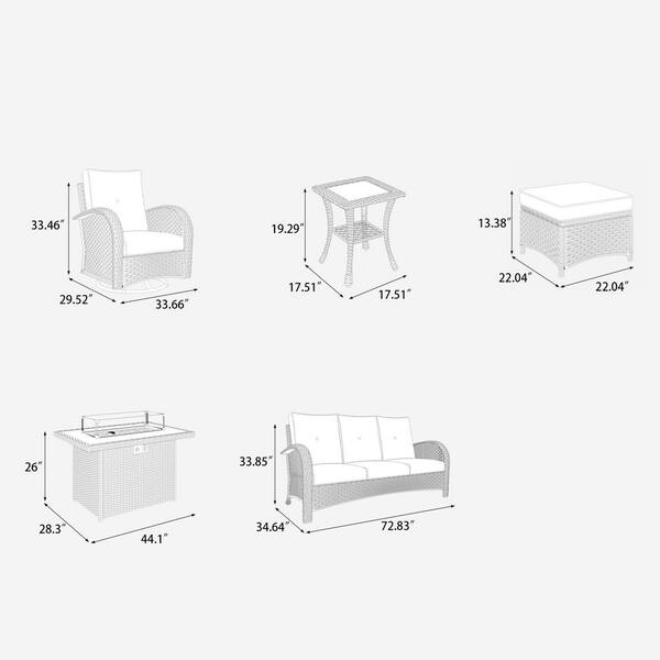 10-Pieces Wicker Swivel Outdoor Chairs Rectangle Fire Pit Patio Conversation Set with Navy Blue Cushions