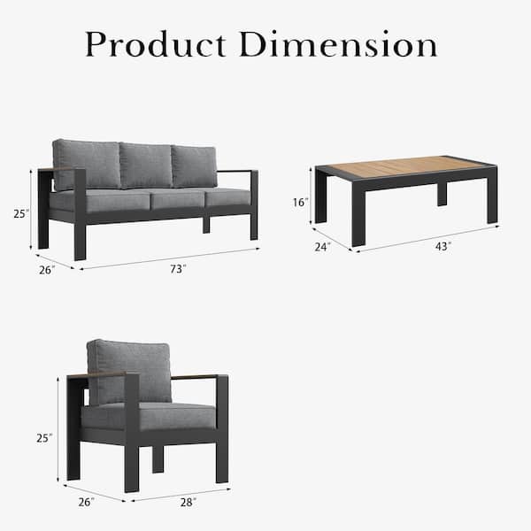 4-Piece Aluminum Outdoor Conversation Set with Coffee Table and Gray Cushion