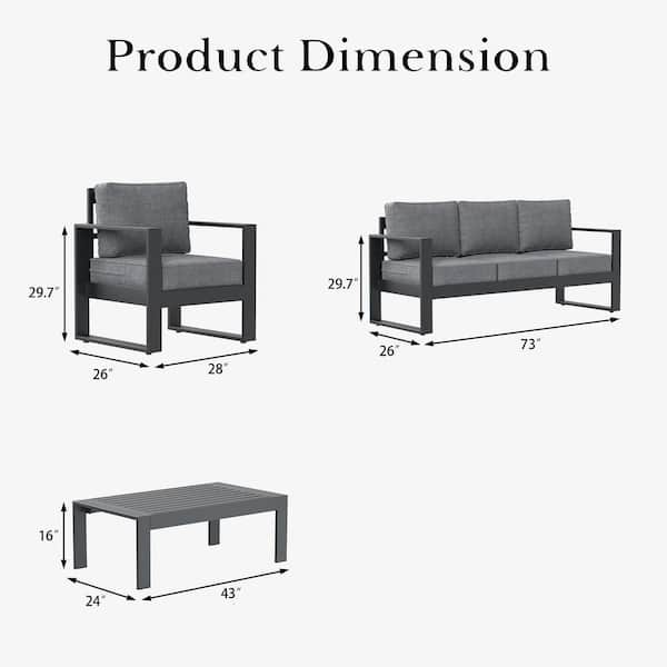 4-Piece Hight Back Aluminum Outdoor Furniture Set with Coffee Table and Gray Frame
