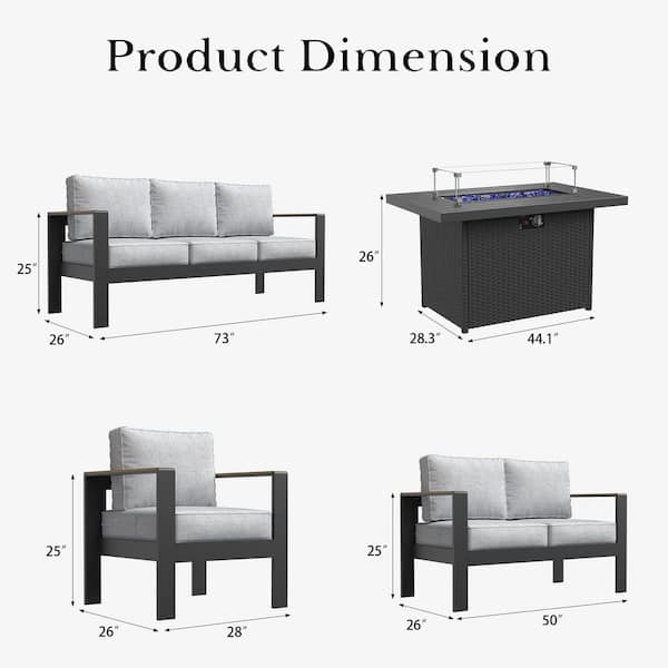 5-Piece Aluminum Outdoor Conversation Set with 55000 BTU Propane Firepit Table and Light Gray Cushion