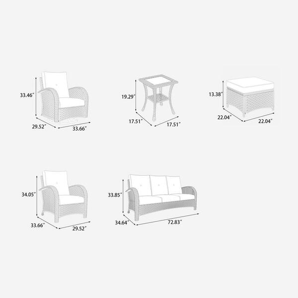 9-Piece Wicker Swivel Outdoor Rocking Chairs Patio Conversation Set with Navy Blue Cushion