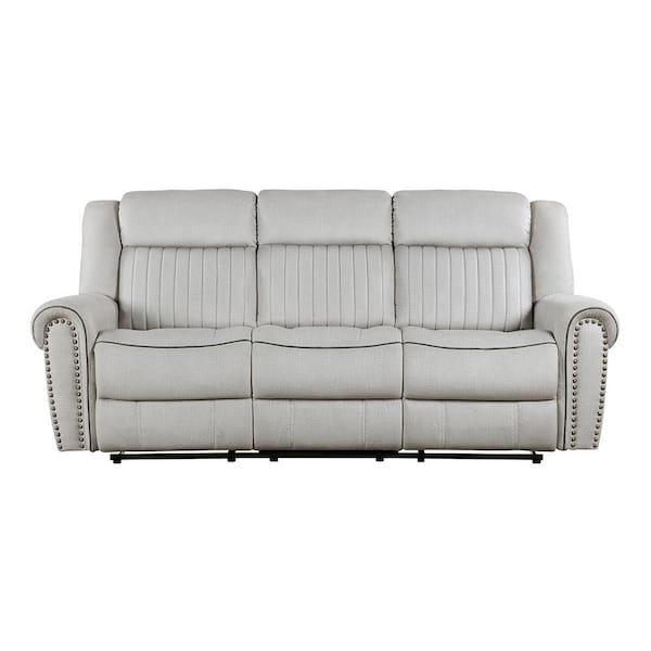 Abington 89 in. W Rolled Arm Microfiber Rectangle Manual Double Reclining Sofa in. Mist
