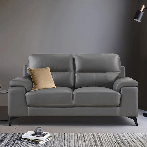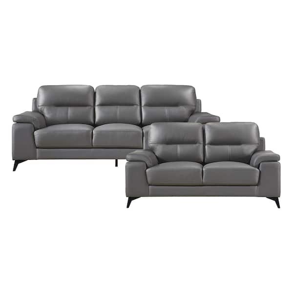 Argonne 88.75 in. W Straight Arm Leather Rectangle 2-Piece Living Room Sofa Set in Dark Gray