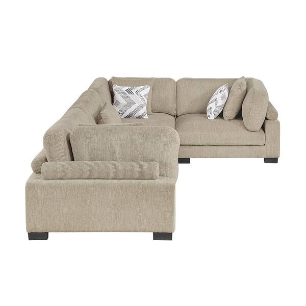 Beane 135 in. Pillow Top Arm 4-Piece Textured Microfiber Modular Sectional Sofa in. Brown