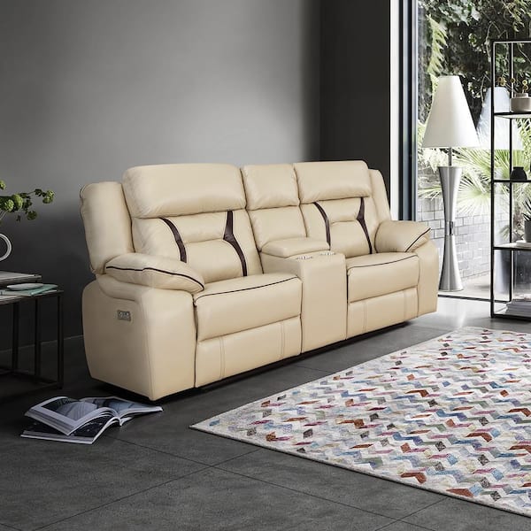 Belmont 86 in. W Pillow Top Arm Faux Leather Rectangle Power Reclining Sofa Set in Beige, 2-Piece