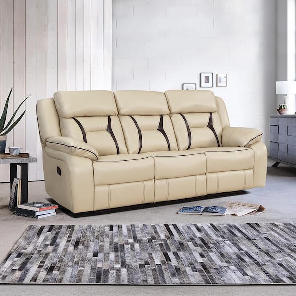 Belmont 86 in. W Straight Arm Faux Leather Upholstery Rectangle Manual Double Reclining Sofa in. Beige