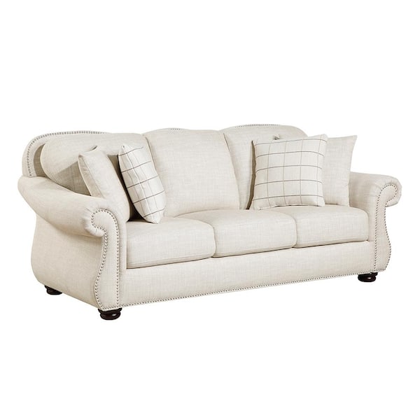 Beven 85 in. W Rolled Arm Textured Fabric Rectangle Sofa in Beige