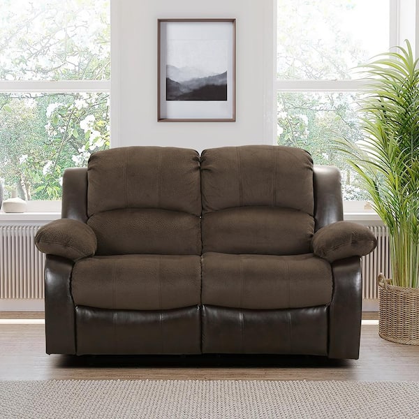 Bianca 83 in. W. Pillow Top Arm Textured Fabric Rectangle 2-Piece Manual Reclining Sofa Set in Chocolate
