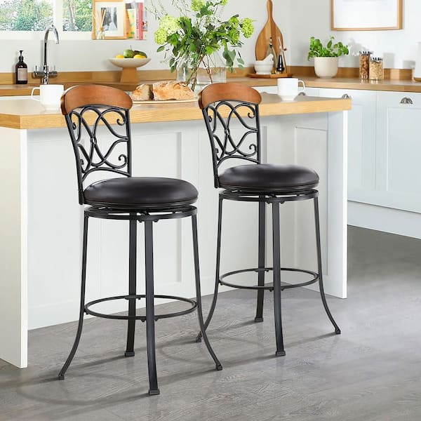 Bonnie 29 in. Black Metal Swivel Pub Height Chair with Brown Faux Leather Seat