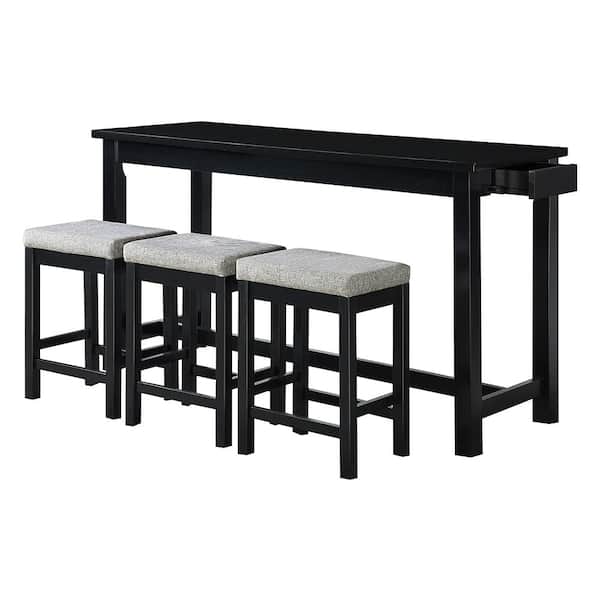 Brim 4-Piece Black Finish Wood Bar Table Set Seats 3