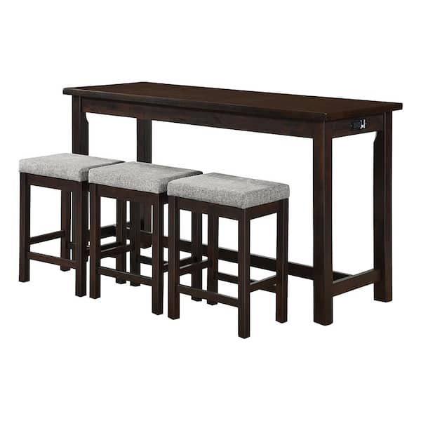 Brim 4-Piece Espresso Finish Wood Bar Table Set Seats 3