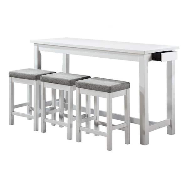 Brim 4-Piece White Finish Wood Bar Table Set Seats 3