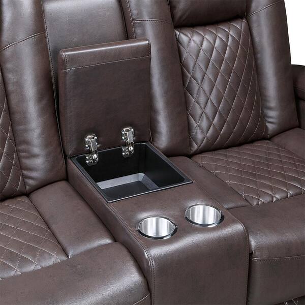 Briscoe 82.5 in. W Straight Arm Faux Leather Rectangle 2-Piece Power Reclining Sofa Set in Dark Brown