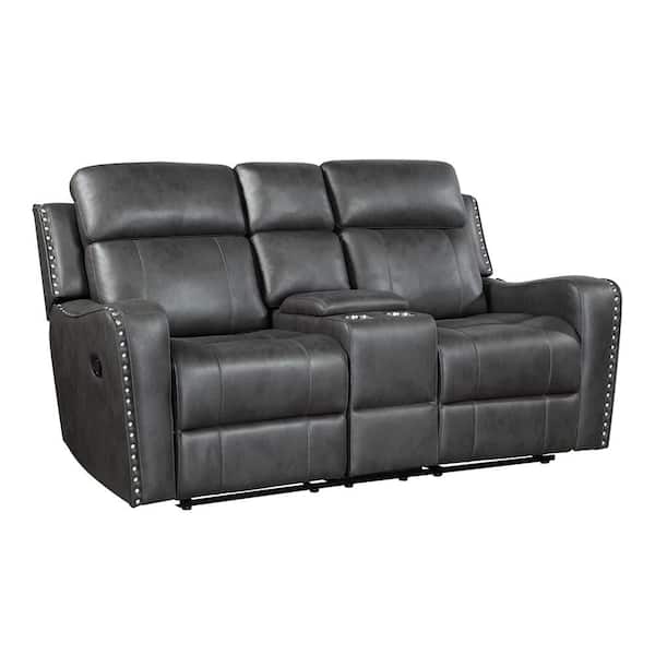 Cadmus 72 in W Microfiber Fabric 2-Seater Manual Double Reclining Love Seat with Center Console in Smoky Gray