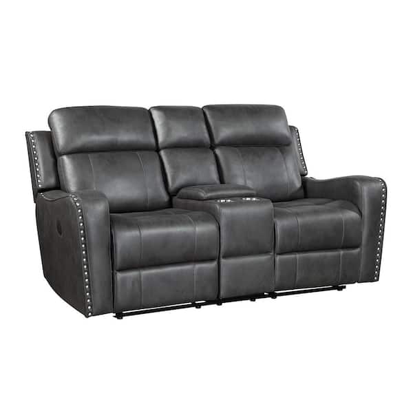Cadmus 72 in W Microfiber Fabric 2-Seater Power Double Reclining Love Seat with Center Console in Smoky Gray