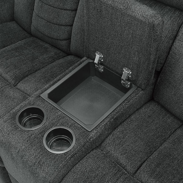 Casoria 88 in. W. Round Arm Chenille Rectangle 2-Piece Manual Reclining Sofa Set in. Charcoal Gray