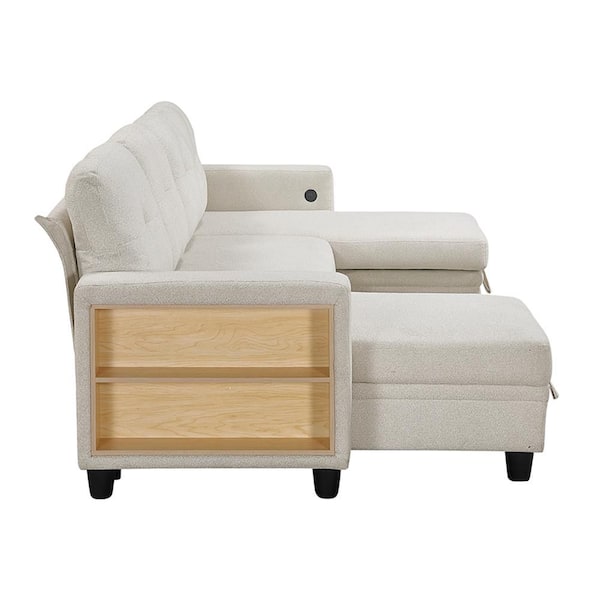 Celylon 102 in. Straight Arm Boucle Fabric Sectional Sofa in Beige with 2-Chaises, Pull-Out Bed and Shelves