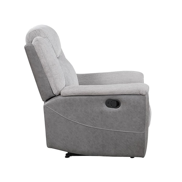 Center Hill Gray Chenille and Faux Leather Manual Recliner