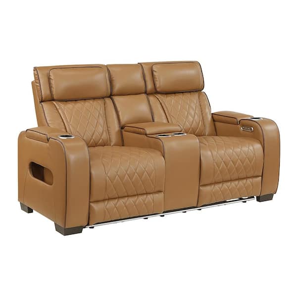 Clumber 73.5 in. W Brown Pillow Top Faux Leather 2-Seater Power Double Reclining Loveseat with Center Console