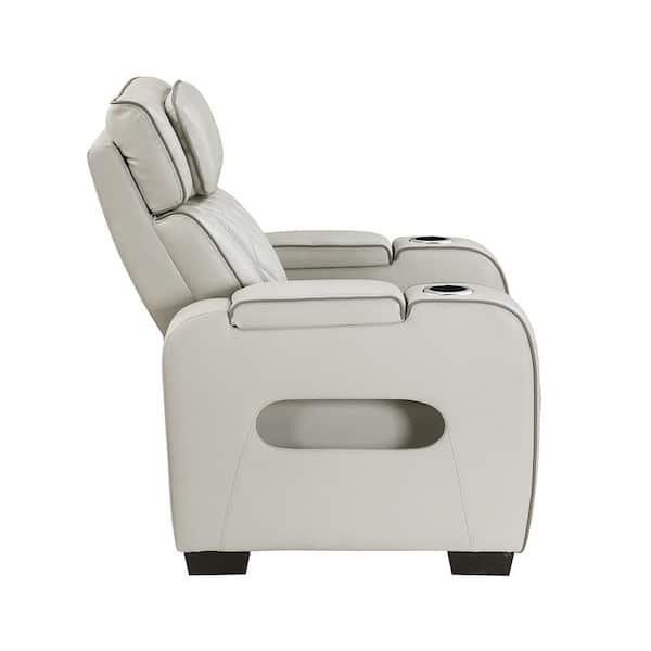 Clumber Taupe Faux Leather Power Recliner with Power Headrest, Cup Holders and Storage Arms