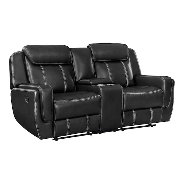 Colin 75.5 in. W Black Faux Leather Manual Double Reclining Loveseat with Center Console, Receptacles and USB Ports