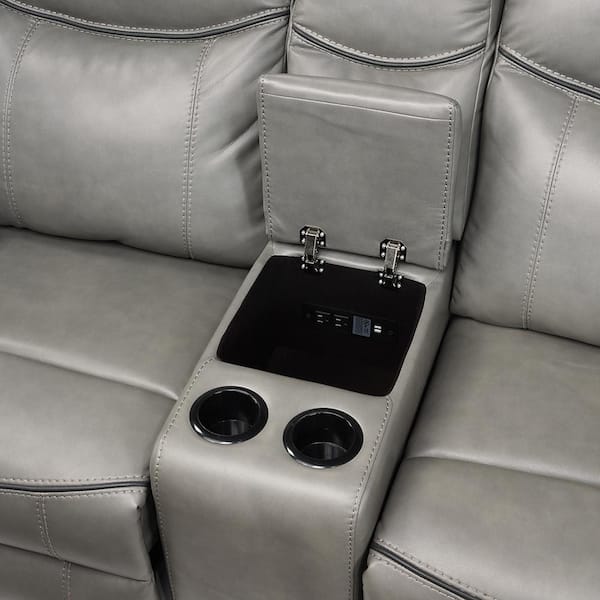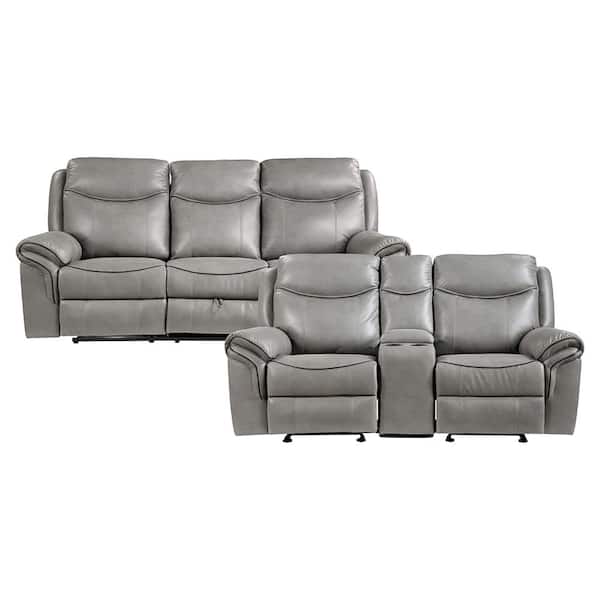Creeley 88.5 in W Pillow Top Arm Faux Leather Rectangle Manual Reclining Sofa Set in Gray, 2-Piece