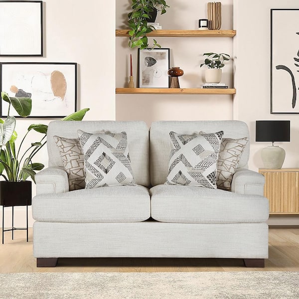 Croydon 91 in. W Straight Arm Chenille Rectangle 2-Piece Living Room Sofa Set in Cream