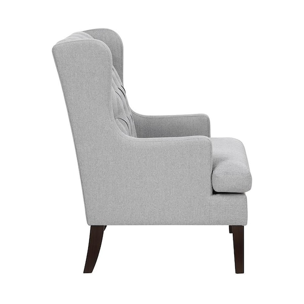 Cutler Gray Textured Fabric Upholstery Button-Tufted Back Accent Arm Chair