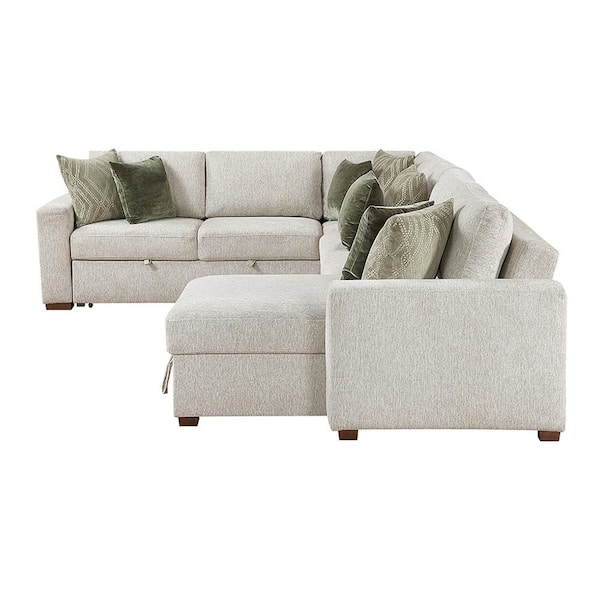 Deleon 140 in. Straight Arm 4-Piece Microfiber Sectional Sofa with Reversible Chaise and Pull-out Bed in Sand