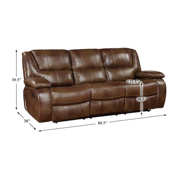 Dimitri 86.5 in. W. Straight Arm Leather Rectangle Manual Double Reclining Sofa in Brown