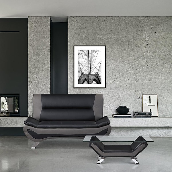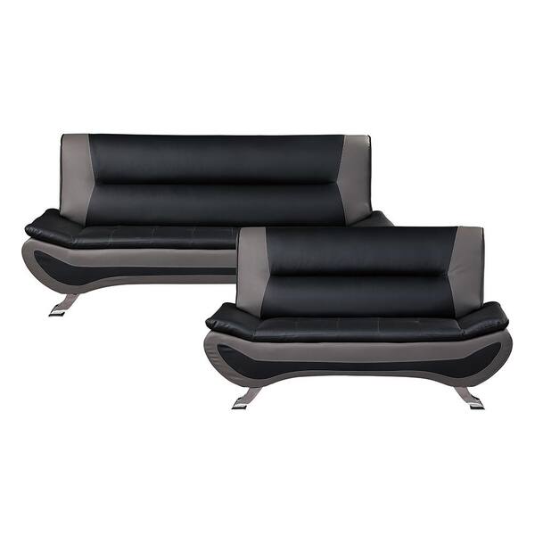 Emerson 77.5 in. W Armless Faux Leather Rectangle 2-Piece Living Room Sofa Set in Black and Gray