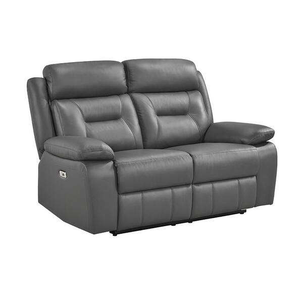 Emillia 62.5 in. W Dark Gray Leather Power Double Reclining 2-Seater Loveseat