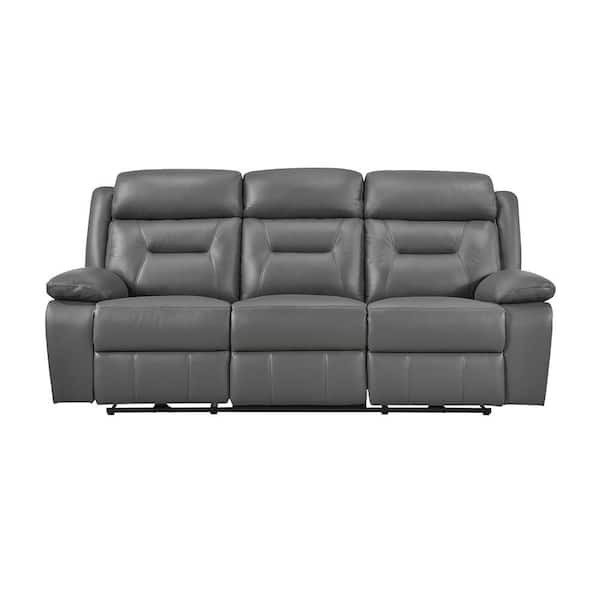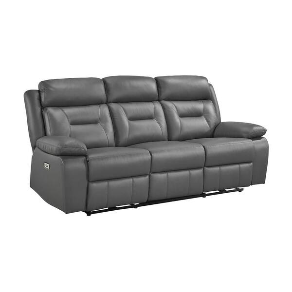 Emillia 87 in. W Pillow Arm Leather Rectangle Power Double Reclining Sofa in Dark Gray