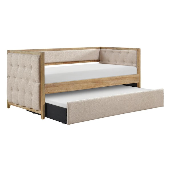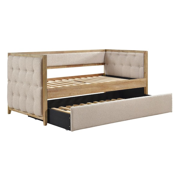 Farrah Beige Boucle Fabric Upholstered Twin Daybed with Trundle