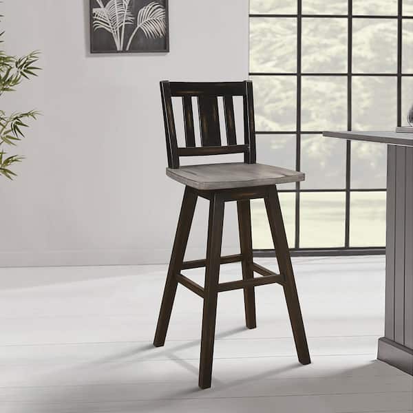 Fenton 28 in. Distressed Gray and Black Wood Swivel Pub Height Chair (Slat Back) with Wood Seat (Set of 2)