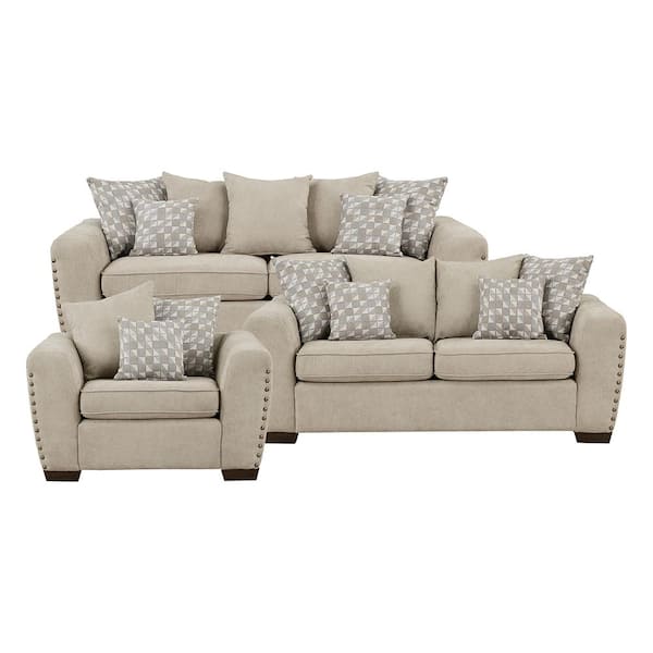 Fleming 82 in. W. Straight Arm Chenille Rectangle 3-Piece Living Room Sofa Set in Light Brown