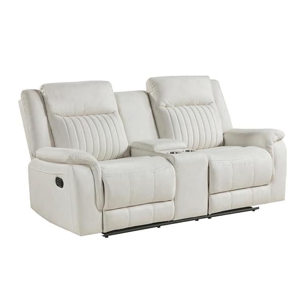 Gabi 75 in W Microfiber Fabric 2-Seater Manual Double Reclining Love Seat with Center Console in Beige