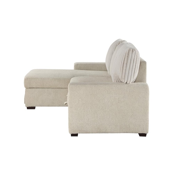 Hankins 87 in. Straight Arm 2-Piece Fabric Sectional Sofa with Left Chaise and Pull-Out Bed in Beige and Light Gray
