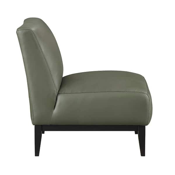 Holland Green Leather Upholstery Accent Arm Chair