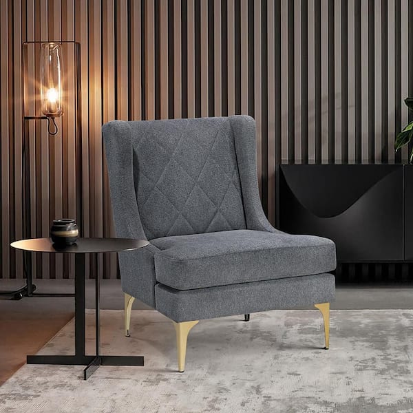 Katty Dark Gray Chenille Upholstery Stiched Back Accent Arm Chair