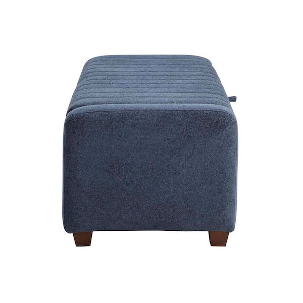 Kelsey Blue Boucle Fabric Solid Wood Brown Finish Lift Top Storage Bench 50 in.