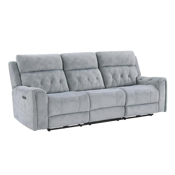 Korlan 98 in. W Straight Arm Microfiber Rectangle Power Double Reclining Sofa with Power Headrests in. Gray
