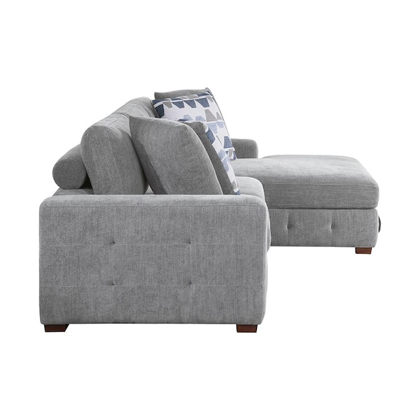 Laconia 115 in. Straight Arm 2-Piece Chenille Sectional Sofa in Gray with Right Chaise