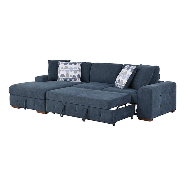 Laconia 115 in. Straight Arm 3-Piece Chenille Sectional Sofa in Blue with Left Chaise and Storage Ottoman